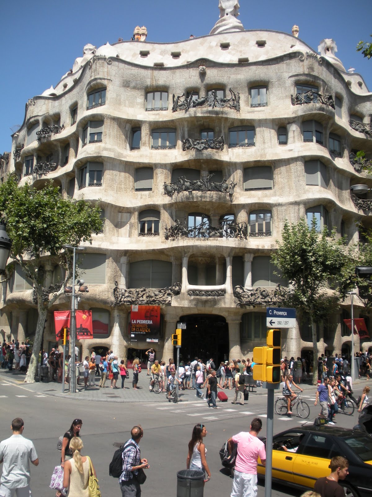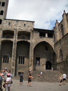 Later that day, I walked all along The Ramblas, from the harbor to the Placa de Catalunya, stopping to eat at a restaurant along the way, browse at some shops, watch some of the street performers, etc. I walked through a market nearby, filled with meat stands, cheese stands, fruit and vegetable stands, and more. It was very lively and busy and fun to walk around. The first couple days, I think I enjoyed just wandering around the city the most, looking at the architecture, watching people, etc.!