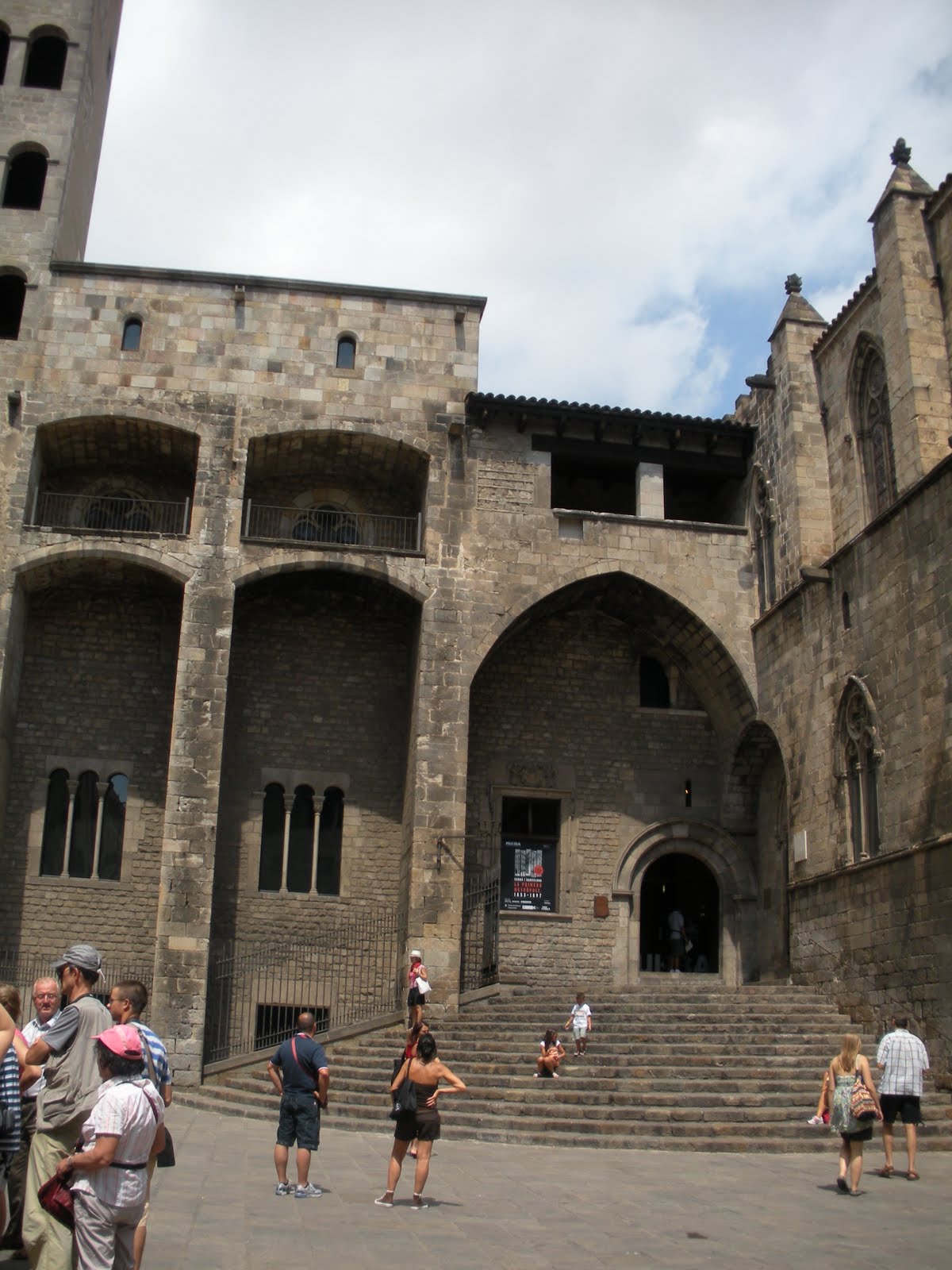 Later, I wandered past the Cathedral and around the Barri Gotic, the Gothic Quarter. The streets were narrow and cobblestoned, lined with shops, cafes, ice cream shops, bakeries, clothes shops, souvenir shops, and more. The streets were busy with people, and I heard bits of several languages and noticed people from several countries. I walked past part of the original Roman city walls, past some museums, shops. I looked at some restaurant menus as I walked along, looking for some good Spanish or Catalan cuisine. I finally found a good option for a restaurant, and I tried chicken paella, a traditional Spanish baked rice dish with tomatoes, peppers and herbs. A glass of red sangria went well with it! Later I came across The Ramblas as I wandered around. The Ramblas is a famous street in Barcelona, filled with tourists, street performers, souvenir shops, street stands and restaurants. It was a great place to people watch, with many people everywhere coming and going.
