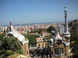 After my visit to the church, I visited Parc Guell, a large city park with Gaudi architecture in several houses and buildings. It has a great view of Barcelona, and the buildings are bright, colorful and fun. Many people were there hanging out, enjoying the warm summer day.
