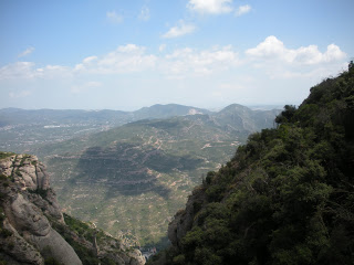 Another day, I took a half-day train trip to Montserrat, a beautiful monastery high up in the mountains about an hour outside Barcelona. I met a nice Spanish couple on the way, and we tried to have a Spanish/English conversation, which kind of worked. Then we arrived at the Montserrat stop. From the base of the mountain, you can barely see the buildings. Then I took another train up the mountain to the monastery. The monastery had beautiful views of the surrounding mountains, hiking trails, and lots of trees. There’s several buildings, a shop, cafe, a church and other buildings. It was a nice natural setting to be in, up in the mountains with a beautiful view, a contrast from the busy city of Barcelona. When I left, I decided to take a cable car back down the mountain to the train station. About 12 of us crammed in and held on to the rails as the cable car/gondola took us down the steep mountain. That was exciting!