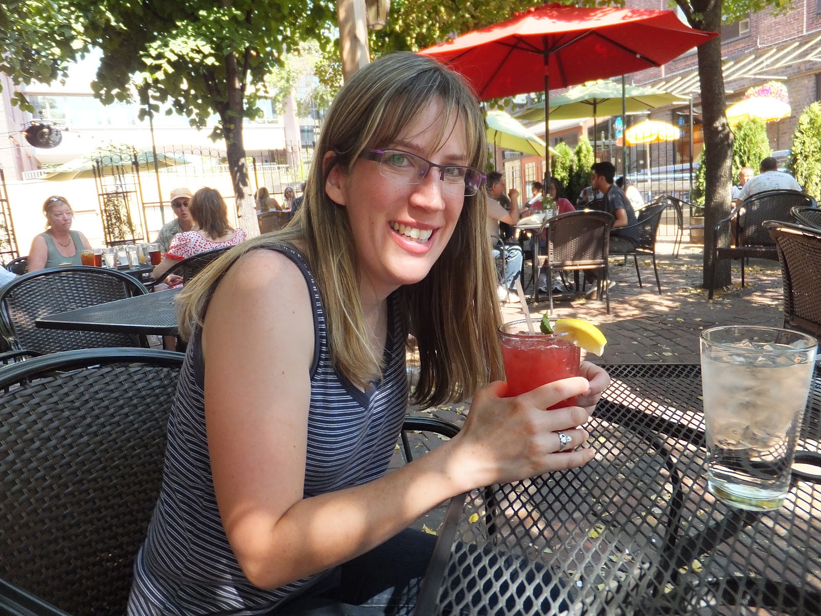 After a walk across the Stone Arch Bridge, which was busy with walkers, joggers, bikers, and rollerbladers, we found ourselves in St. Anthony Main, an area along the river in Minneapolis with cafes, restaurants, theatres and more.