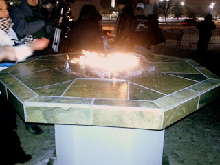 By this time, we were quite cold, so we stopped to warm our hands over a little fire outside the ice castles. Then we made our way into the Mall of America to warm up and have dinner and chat about the day. A great end to a fun winter day.