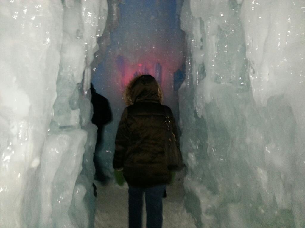 Walking through a passage in the ice castles