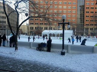Nearby, people skated around an ice rink and enjoyed the cold winter sunshine.
