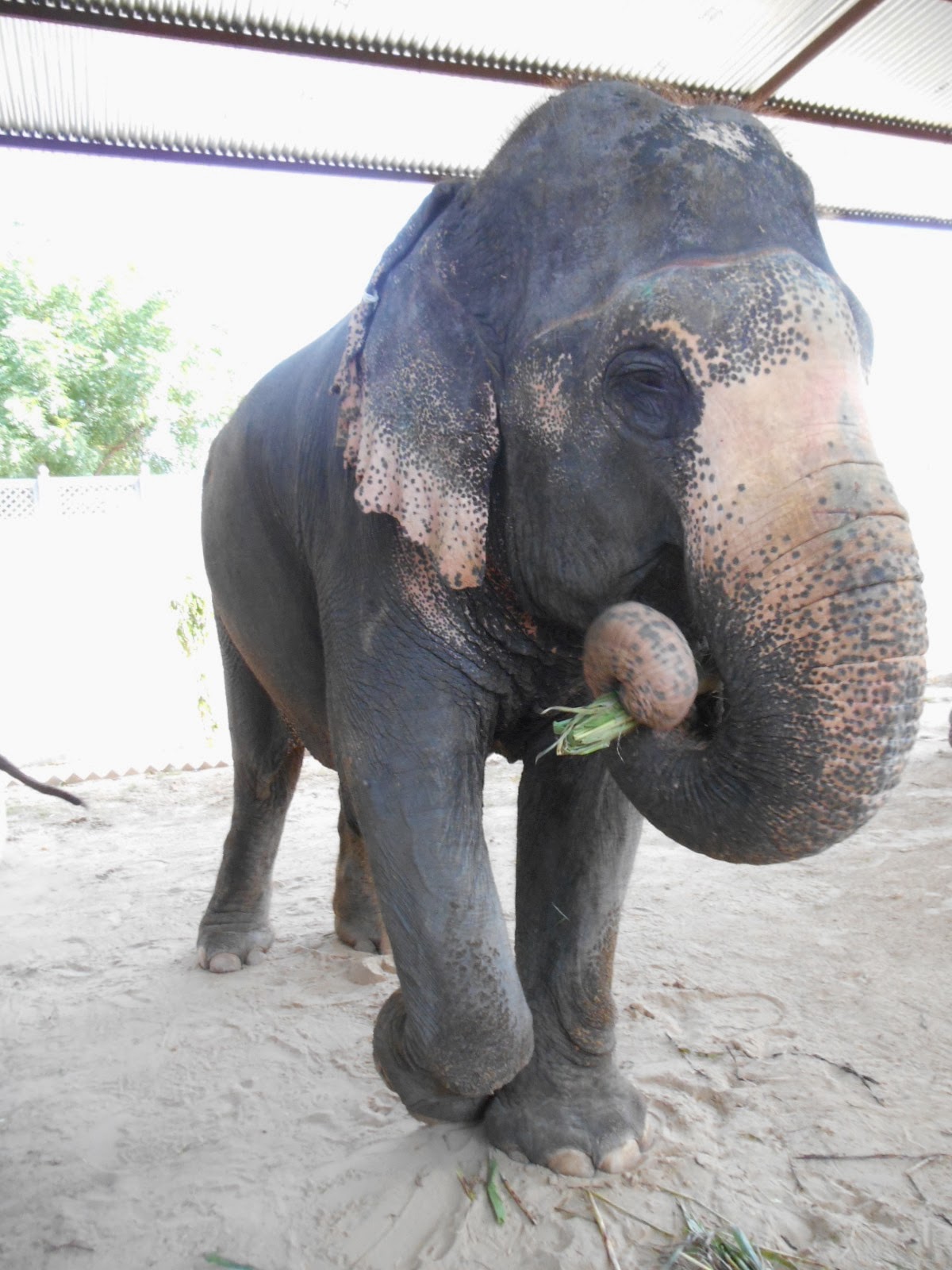 The team working there gave us elephants, sugarcane and bread to give to the elephants. The elephants grabbed the bundles of sugarcane with their trunk and rolled it into their trunk, and then stuck it into their large mouths. We fed them bananas- putting them right in their mouths, which were big enough to hold several mushy bananas and some sugarcane. A bag of bread could be gobbled in a couple mouthfuls.